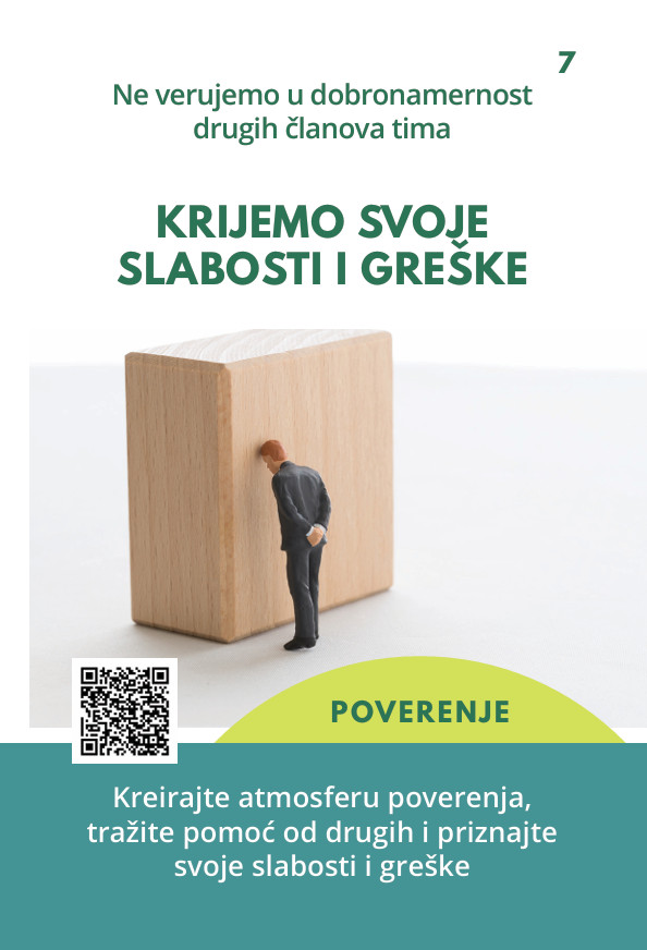 - Kako da otkrijte uzroke ovih izazova i da ih uspešno rešite i prevaziđete, našim vizuelnim interaktivnim karticama “timske efikasnosti“?