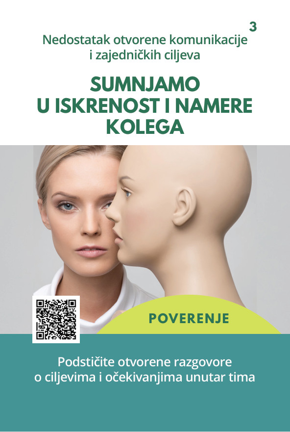- Nisko poverenje u dogovore – kada kolega kaže da će nešto uraditi, prvi impuls nam je da sumnjamo „da li će zaista“.