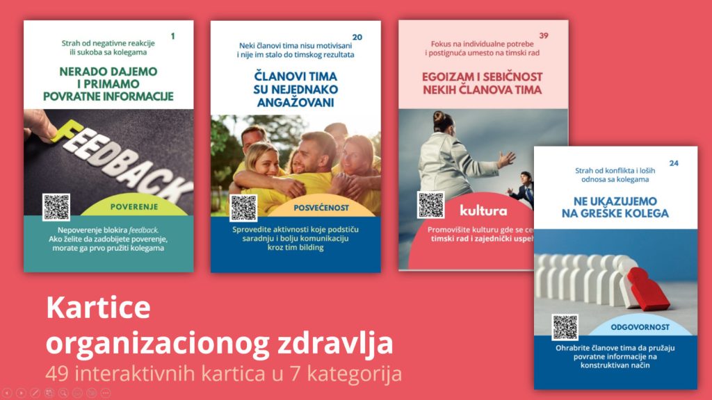 - Kako da otkrijte uzroke ovih izazova i da ih uspešno rešite i prevaziđete, interaktivnim karticama “timske efikasnosti“?