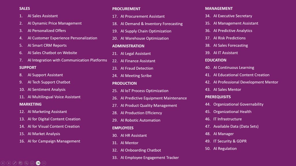 A list of all 50 available AI solutions on visual interactive cards