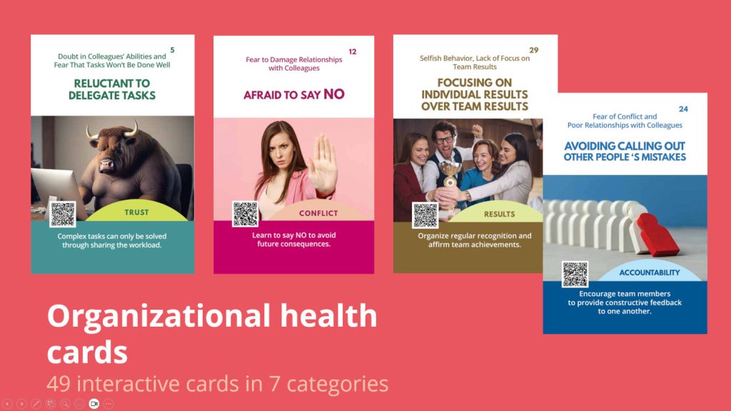 - How can you discover the root causes of these challenges and solve and overcome them using interactive “Organizational Health” cards?