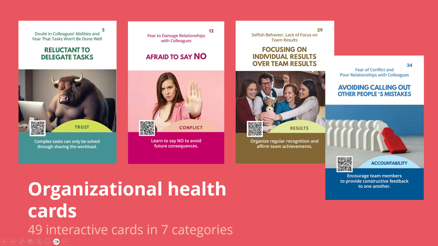 - You will recognize the main challenges and symptoms in your team using easy-to-understand visual cards,