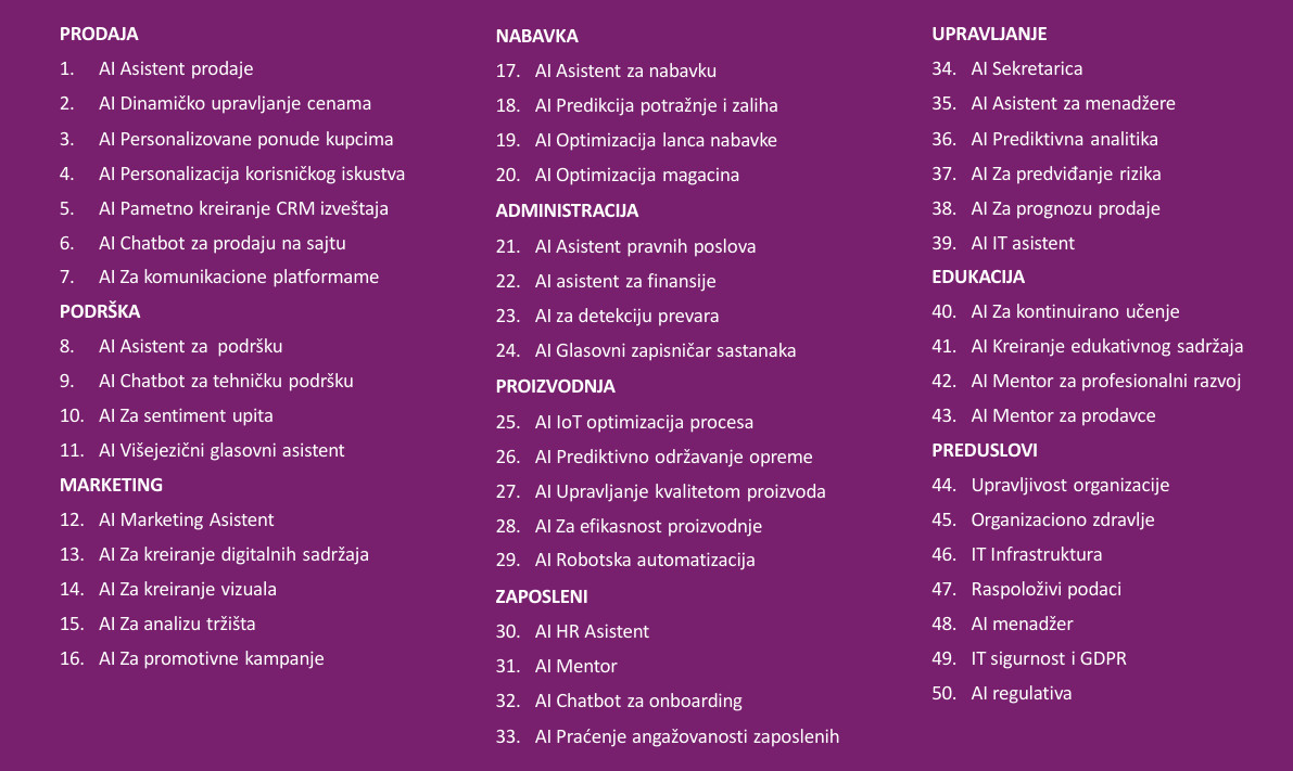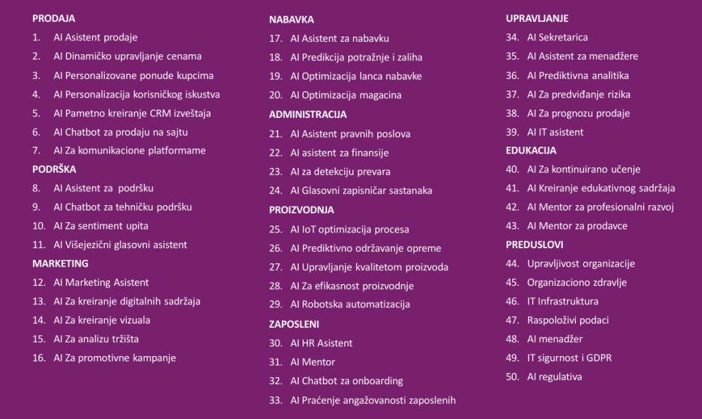 - AI rešenja trenutno na raspolaganju kompanijama u Srbiji