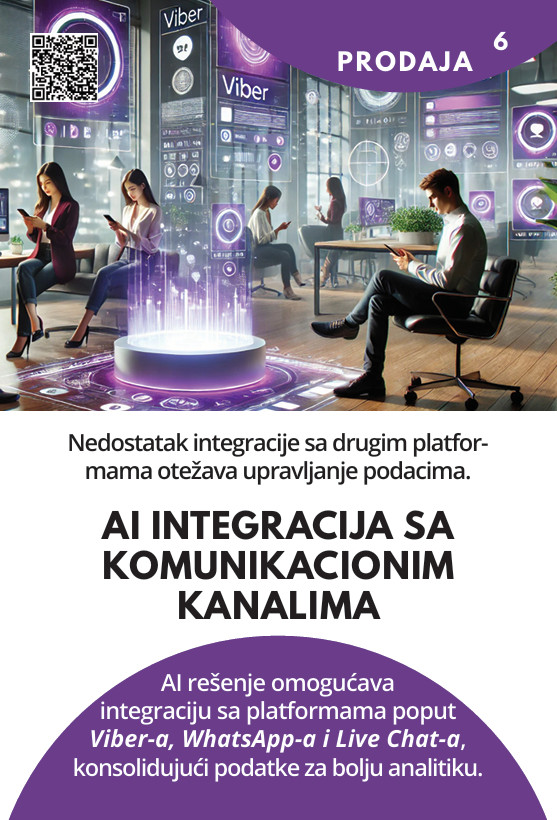 - Integracija sa CRM-om, helpdesk sistemima i kanalima (email, chat, Viber, Meta).