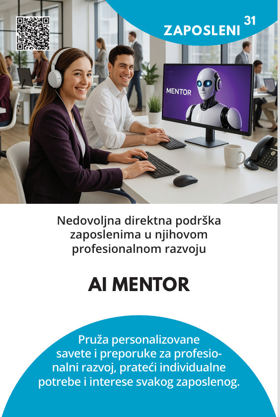 - Razvoj AI modela za mentorstvo i preporuke za razvoj veština.